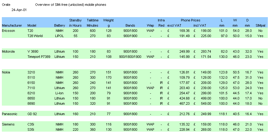 Phones Overview of Available SIM-free (unlocked) Mobile Phones